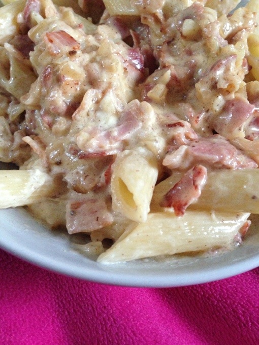 Nu luktar det mat i hela huset! <3 jag älskar när det luktar mat eller kaffe, det känns så hemtrevligt!!! Jag har precis lagt lite mat det fick bli pasta och bacon sås gjort på vitlök, lök, bacon och creamfresch. Det är så enkelt att laga mat med bacon man behöver liksom inte krydda det eftersom det redan är så salt!! Jag kan säga att maten blev riktigt god!!! Nu ska jag smaska i mig resten sen kolla på film igen! 🙂