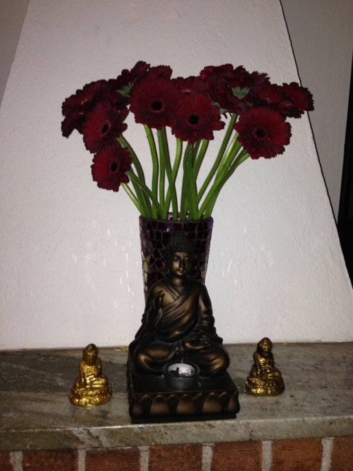 Jag fick med mig jätte fina vinröda germinis och en stor fin lila orkidée hem 🙂 dock är det lite mörkt nu så vart inget foto på orkidéen men ett dåligt kort på gerberan får ni 😉 haha bilden är verkligen JÄTTE dålig xD