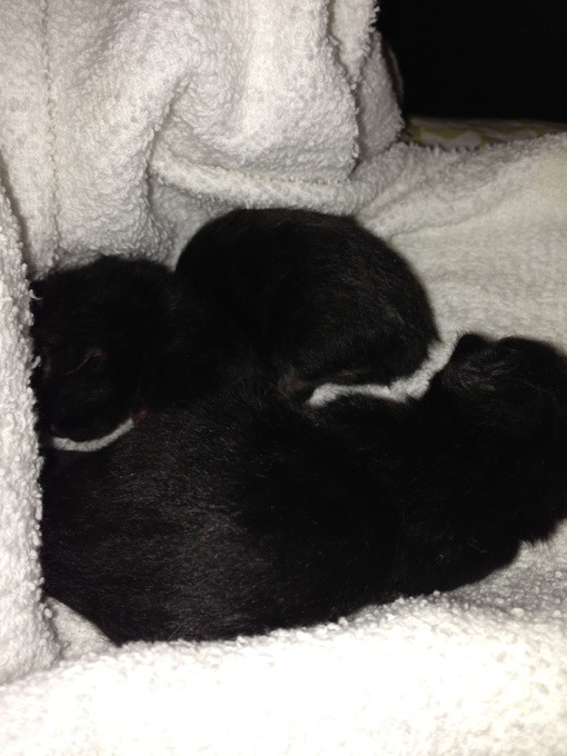 23;54 kom det äntligen en tredje bebis. Men nu när den väl är ute så känner jag en till. Och jag är säker att det är en till för jag kände hur den sparkade samt att man känner hur den ligger med huvudet och rumpan ^^, så nu är det 3 stycken små helsvarta saker som ligger och snuttar.
