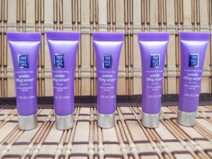 Apply wrinkle filling serum and allow to absorb into skin for one or two minutes.