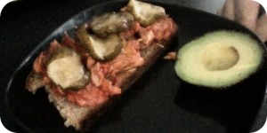 Avokado- och hallonsmoothie med ett Finn crisp med 9 % ost.