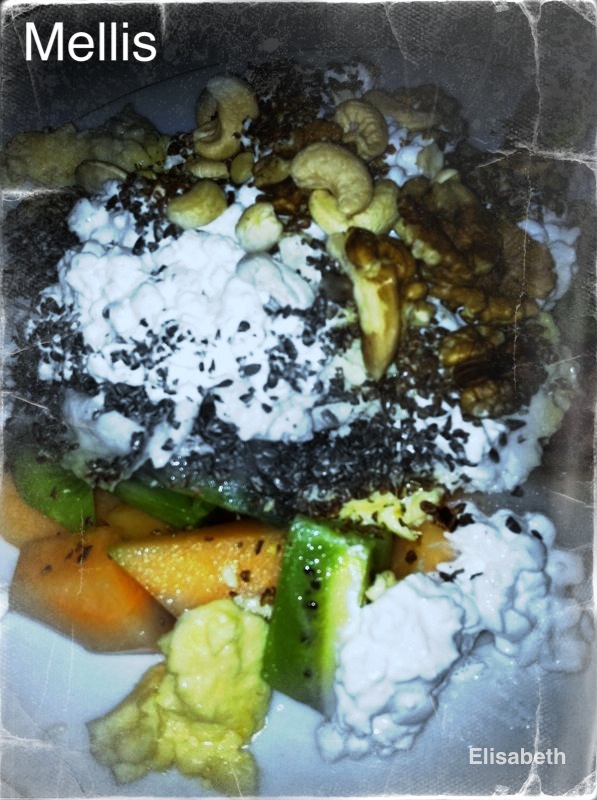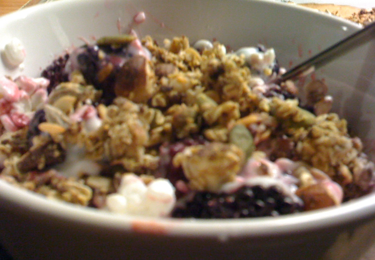 Davos – Yoghurt med bär, frön, nötter, kokosflingor och havregryn. (Görs dagen innan!)