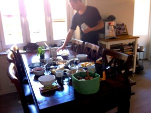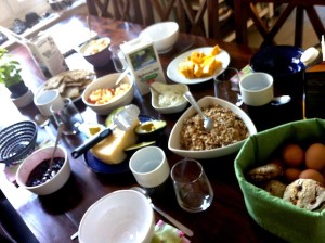 Dilldipp, knäcke, frallor, ”marmelad”, ost, hemmagjord müsli, ägg, kaffe, juice, avokado…ja nu ser ju själva