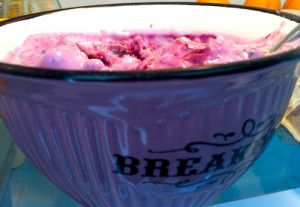 Det har blandats ner havregryn, torkade aprikoser, blåbär, kruskakli och lite frön i lättyoghurt. Nu ska det vila sig i form för att sedan intagas i den härliga soffan med allsvensk fotboll på skärmen. OCH jag har tippat – med pengar från vinst. Förstås.