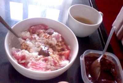 Efter ett tufft sprintpass inklusive mage behöver kroppen sin välförtjänta återhämtning i form av vila och energi. Jag älskar en dubbel espresso, min proteinsmet med kakao och mandlar som stått i kylen (fungerar även som glasyr på bananmuffins!) och keso/kesella med melon. Skrev klart en text inför nästa nummer i morse också. SÅ GÖTT!