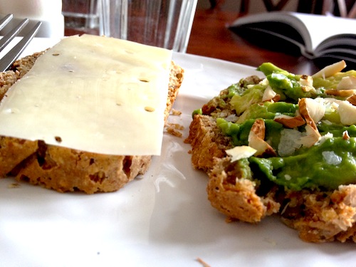 Dagens mellanmål var en salig blandning. Jag var sugen på all möjligt. Fett, salt, protein, kladdigt, mjukt. Så det blev proteinbröd med ost och avokado. Bananmuffins med proteinkakaokladd på. Smakade som en efterrätt faktiskt. Kaffe till det. Nu laddar jag för dagens pass nummer två.