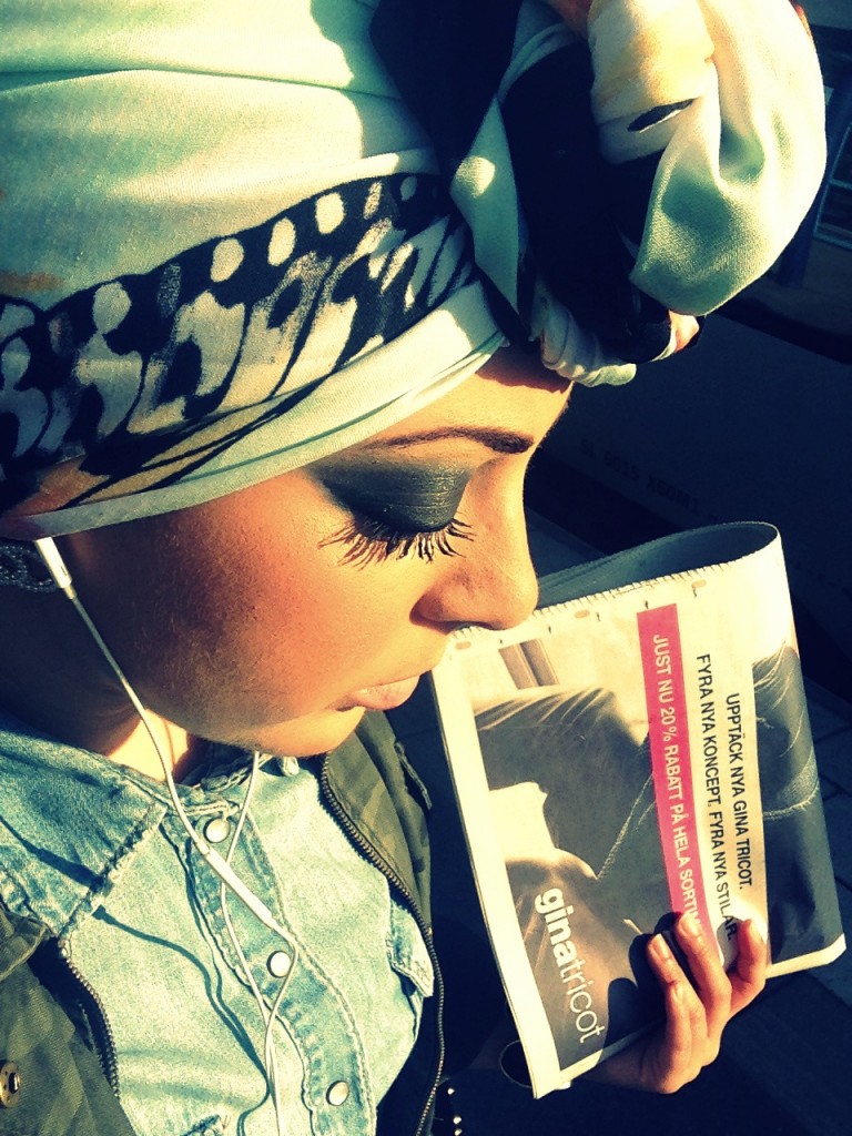 Är på väg till ett möte är dock en aning försenad för att min nya sjal med en massa härliga fjärilstryck var större i storleken än vad jag var van vid så det tog några minuter extra att få turbanen på plats. Vill ni att jag visar er hur jag knyter mina turbaner?