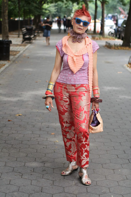 Blev tipsad av en bloggläsare om en blogg med bilder på coola tanter med coola outfits, att inspireras av! Jag kommer garanterat vara en tant som går runt med en fågek på huvudet eller en lax runt halsen.. Och med en papegoja på axeln som sällskap..vid högtider eller så?