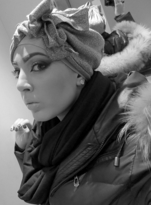 Ljus Grå stickad turban med rosetter Designad by Iman Aldebe.