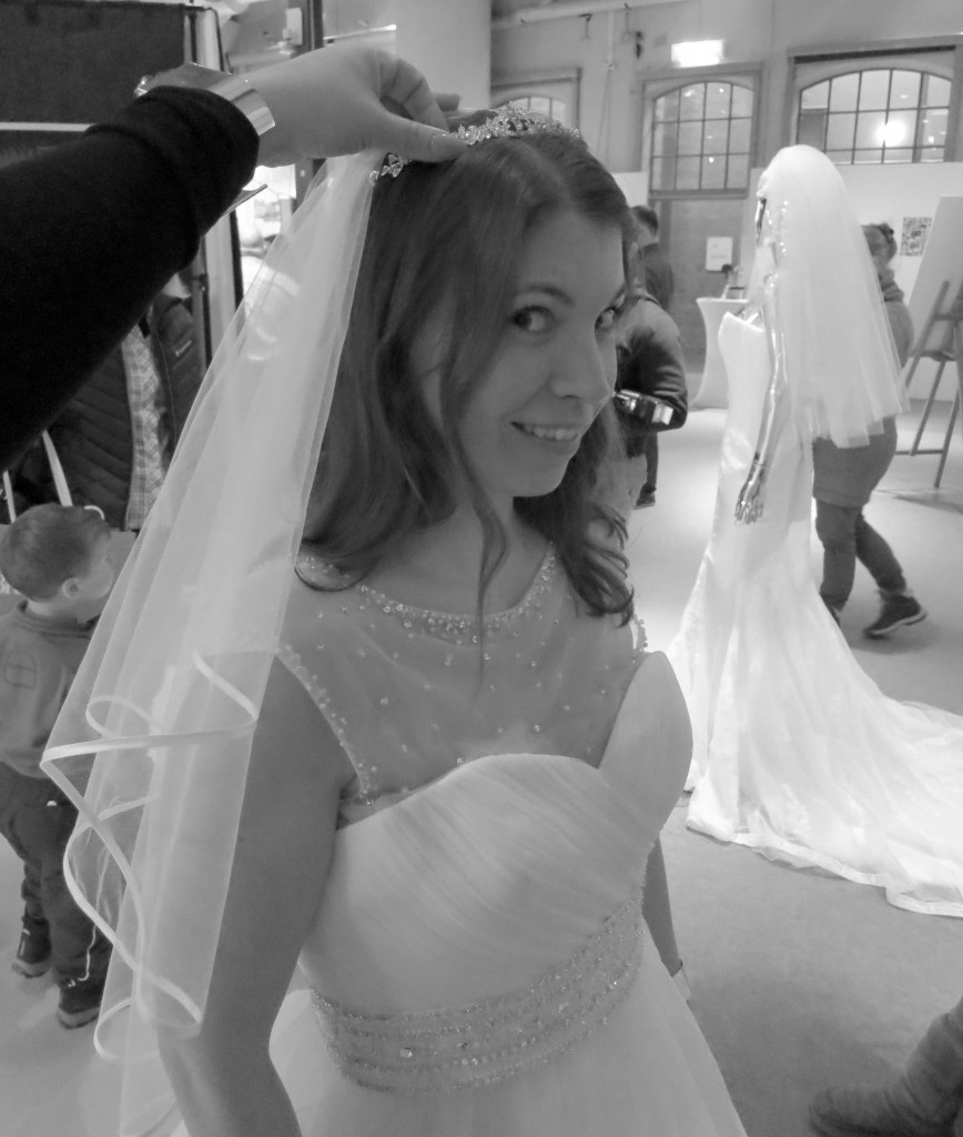 Brudslöja designad av Iman Aldebe  och Klänningen kommer från Proms & Weddings.
