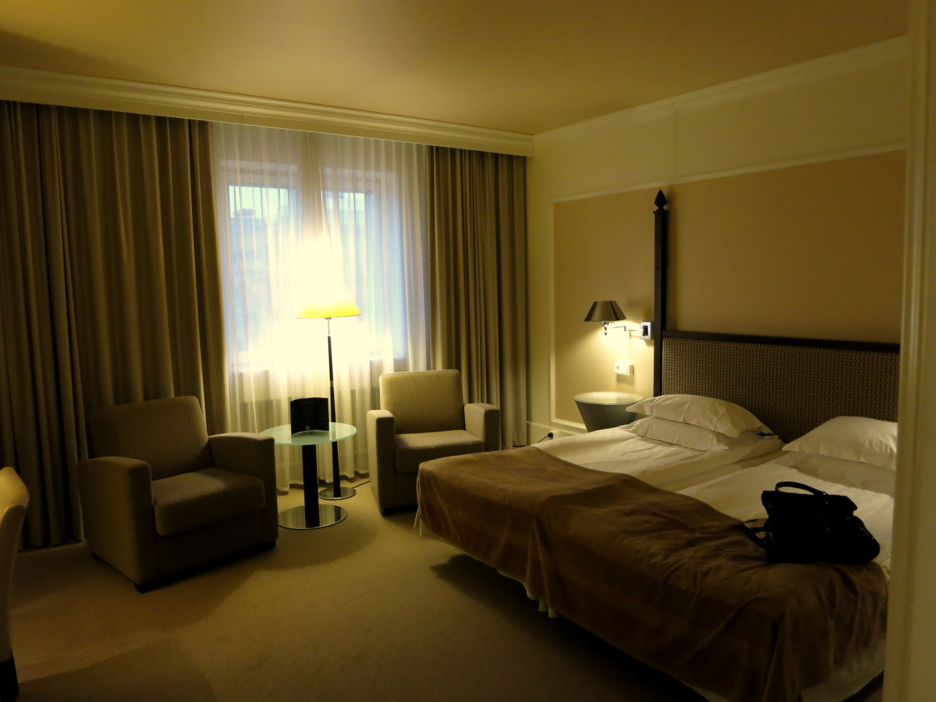 Iaf jag skulle ha kommit fram kl 13:45 till Göteborg istället så kom jag fram kl 16:00 och klampade in i hotellet dygnsur. Och stackars den underbara journalisten från Sveriges Radio som tålamodigt satt och väntade på mig i lobbyn. Vi körde en snabb intervju på hotellrummet om Happy Turbans m.m. och därefter var det dags för att käka på en restaurang med vänner från Göteborg. Jag var nämligen vrålhungrig! Åt en fjuttig torr sallad på tåget från pressbyrån kl 10:00 på morgonen.. Usch aldrig mer!