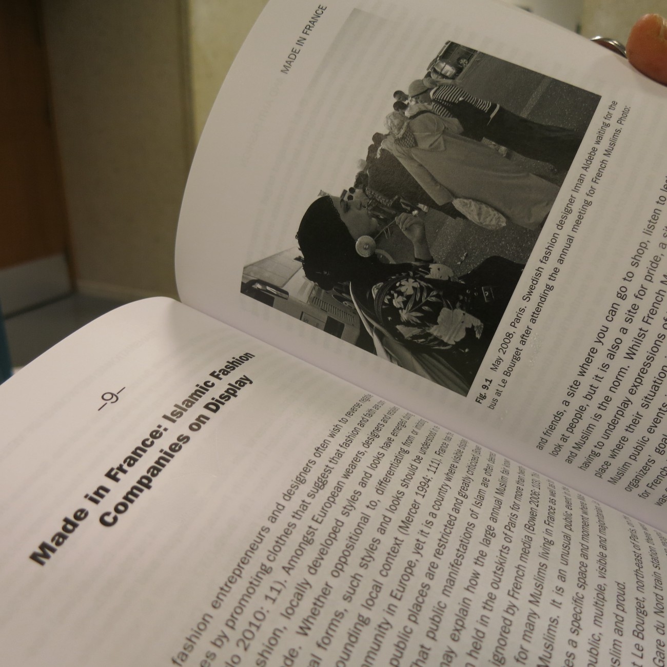 Jag är så sjukt stolt över min forskning och presentation. Aldrig någonsin har en forskning om slöjan varit så avgörande i vår tid. Jag höll i en presentation om slöjans historia och visade upp bilder på hur jag genom att modernisera muslimskt mode redan år 2001 skapade en marknad som idag är en global miljardindustri. Jag fick även kika på lite böcker om islamic Fashion och hittade mig själv på den första från år 2006 då jag var i Paris för att visa upp min lookbok för en kollektion jag skapat. Lite otippat men kul 🙂