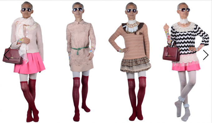 Medan hela världen har sina ögon fixerade på 7 kinesiska äldre män som står uppradade i svarta kostymer, poserar 72-åriga Liu Xianping i kläder från sitt barnbarns klädbutik för kvinnor, Yuekou. Enligt hans barnbarn, Ms. Lv, ska det hela ha börjat när Liu hjälpte till att packa upp varor i butiken: ”Han tog upp ett plagg och försökte ge tips på hur vi skulle mixa och matcha. Vi tyckte det var kul, så vi började fota”
