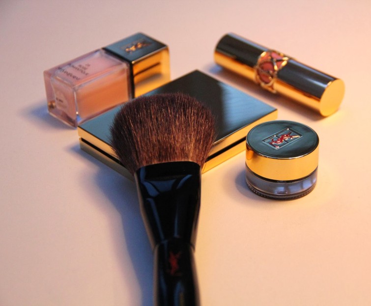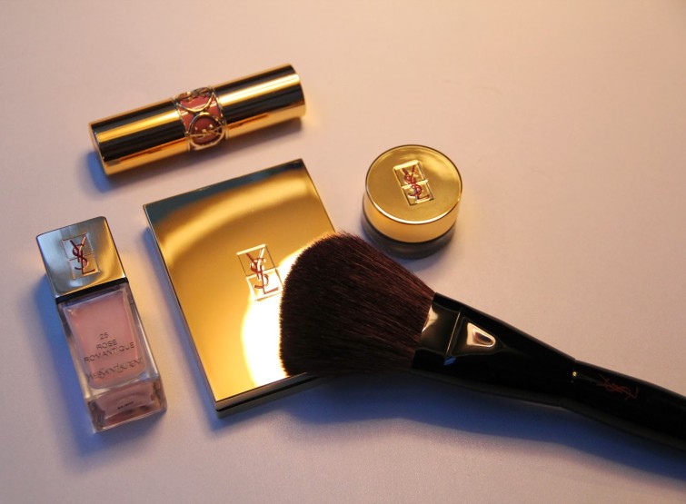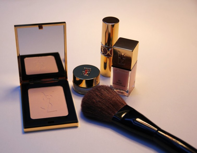 pink yves saint laurent 5 August 201512 January 2014 by emmaanemone Got these YSL things back in Bangkok. From the right: Matt and Radiant Pressed Powder (3), Long-wear Cream Eyeliner (1), Powder Brush (3), Rouge Volupté (1) and Nail Lacquer in Rose Romantique (25).