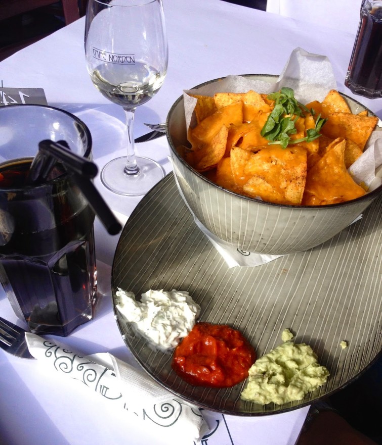 Yesterday we did some shopping in Copenhagen before going to Distortion. We had lunch in Café Norden where I had nachos, wine from the Coppolas and coke.