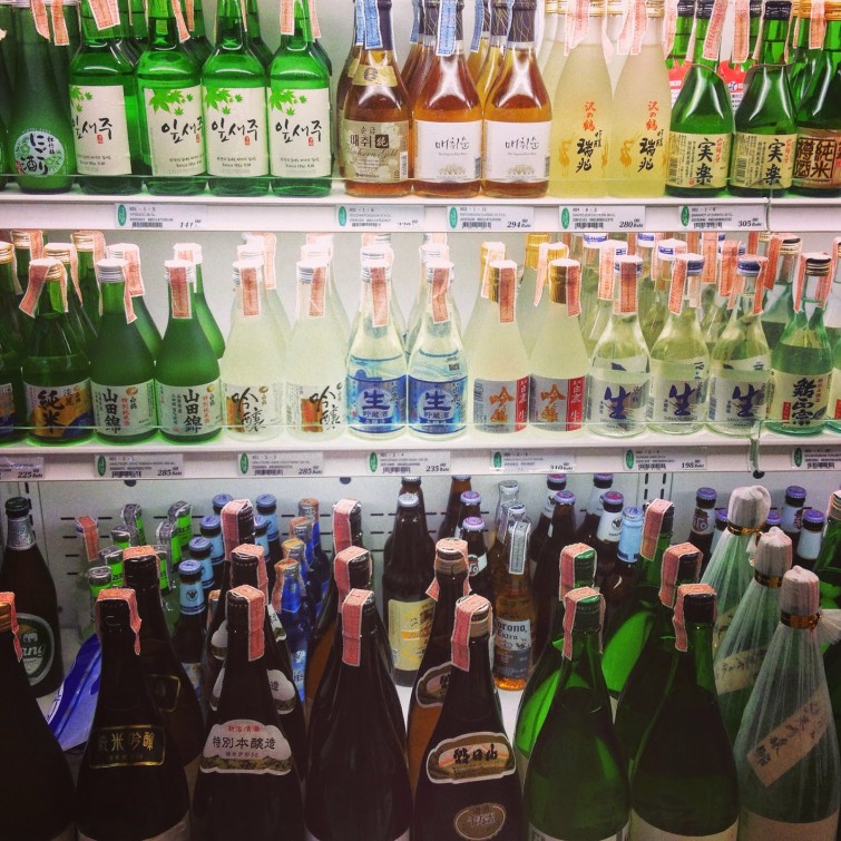 sake & sushi sunday 5 August 201528 September 2014 by emmaanemone Today we had california rolls (they were unusually green but still fabulous) and went grocery shopping. This is a small part of the selection of sake in our local store. I’ve never actually tried it. Next time, perhaps… They bottles look nice.