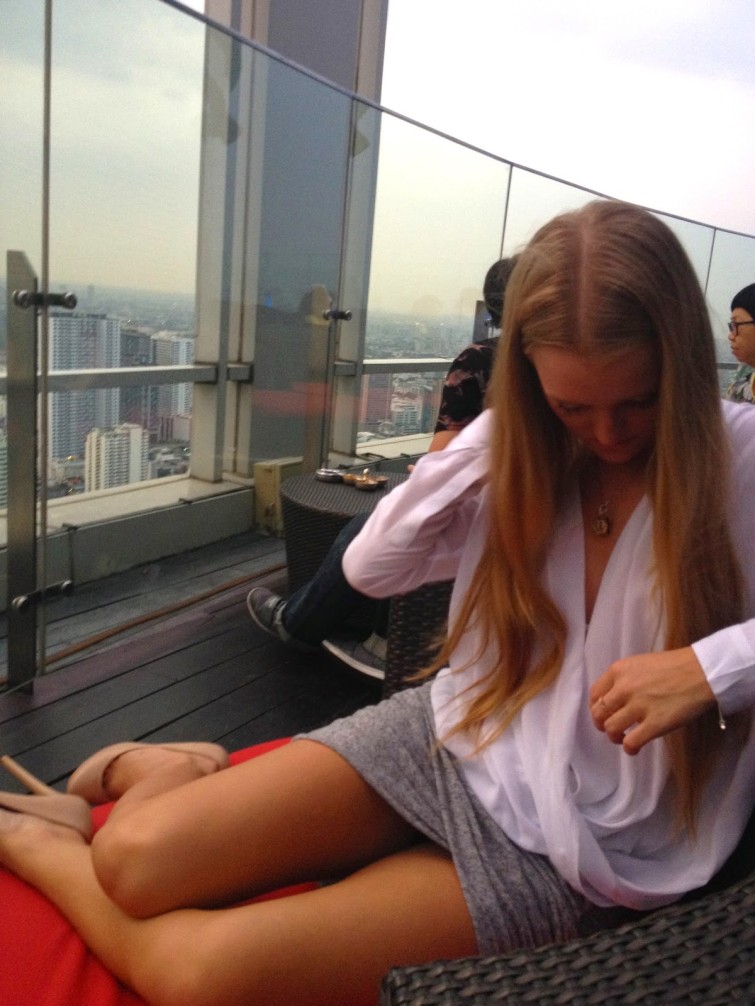 My boyfriend and I went to Red Sky to enjoy the sunset and their happy hour. Unfortunately it was cloudy and we had to order two drinks per person, which I found ridiculous. Anyway, the white wine Sangrias were nice and the view was fab as always. Sometimes it’s nice to see Bangkok from above in daylight. I just bought new heels that I’m wearing. Nothing particularly fancy because I want to be able to wear them to parties. Have a lovely friday!