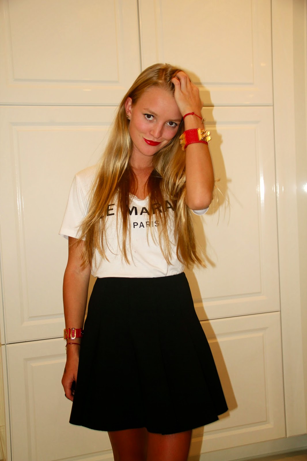 Today was lots of fun. My boyfriend and I went ice skating in the Central World shopping mall. It was quite a long time since I did that. I didn’t go all in though, because as you can see, I was wearing a skirt and I was afraid that I’d fall and scrape my knees… Anyway. This is what I wore today. I love mixing black and white with red. Looks subtle but with a pop of colour. I have to go to bed soon because I’m going to work tomorrow. I hope you had a lovely weekend!