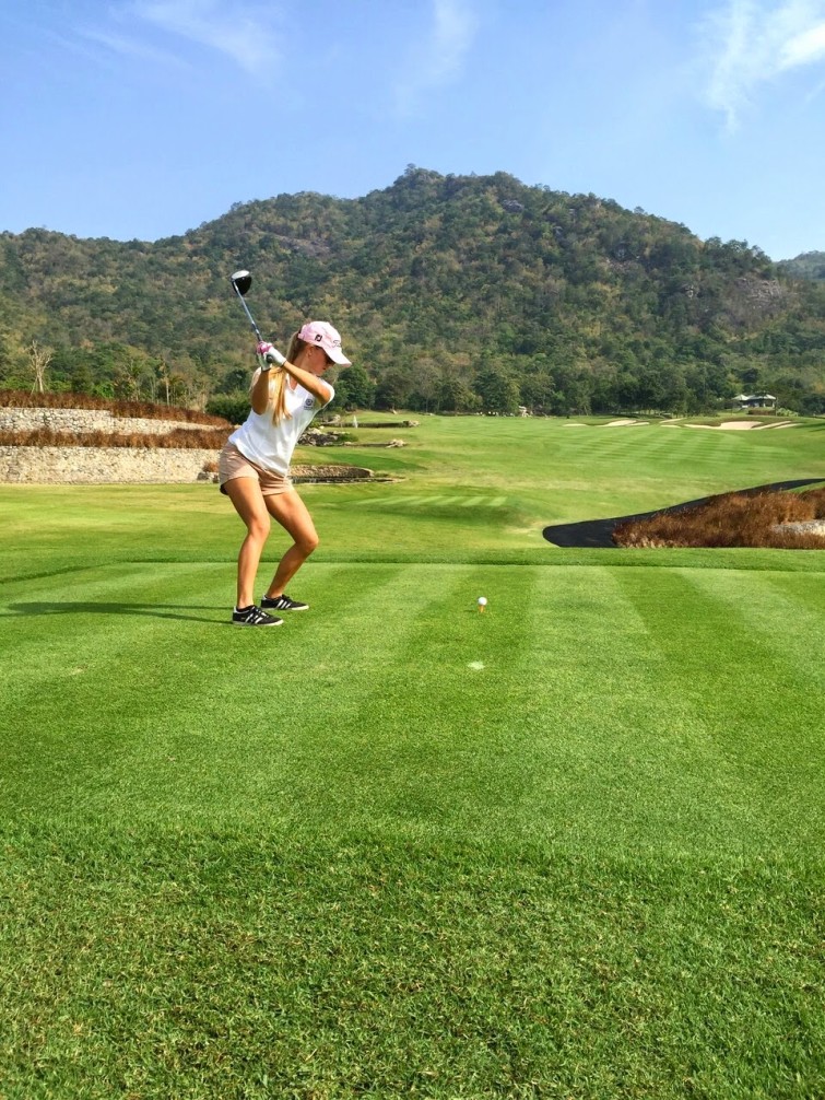 When we were in Hua Hin, we played golf at Black Mountain, which was very nice. I played nine holes and my sister played nine as well. My grandparents and Dad played 18 holes. It was a beautiful golf course but my gold skills were a bit inconsistent… I got par on two holes but I had to pick the golf ball up a couple of times as well.