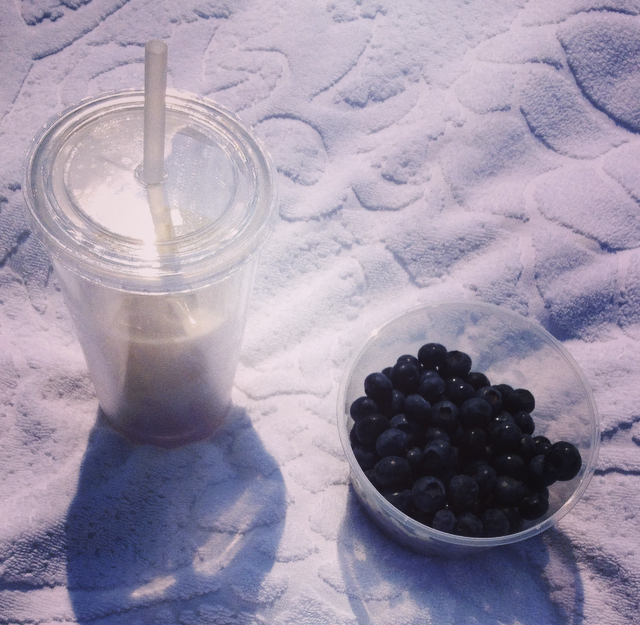 blueberries & ice latte 5 August 201520 January 2015 by emmaanemone Blueberries, home made ice latte (very weak), white towel and tanning equals perfection.