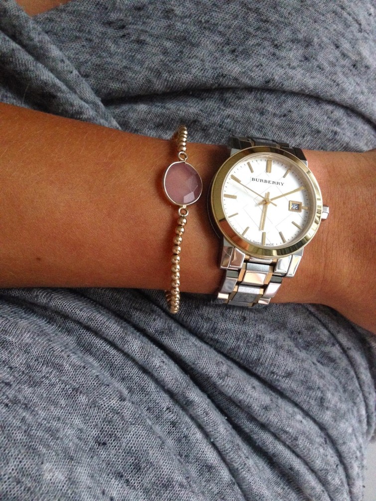 Closeup of everyday details. I’m wearing a draped skirt from Norr, my beloved Burberry watch and a bracelet with a rose quartz.