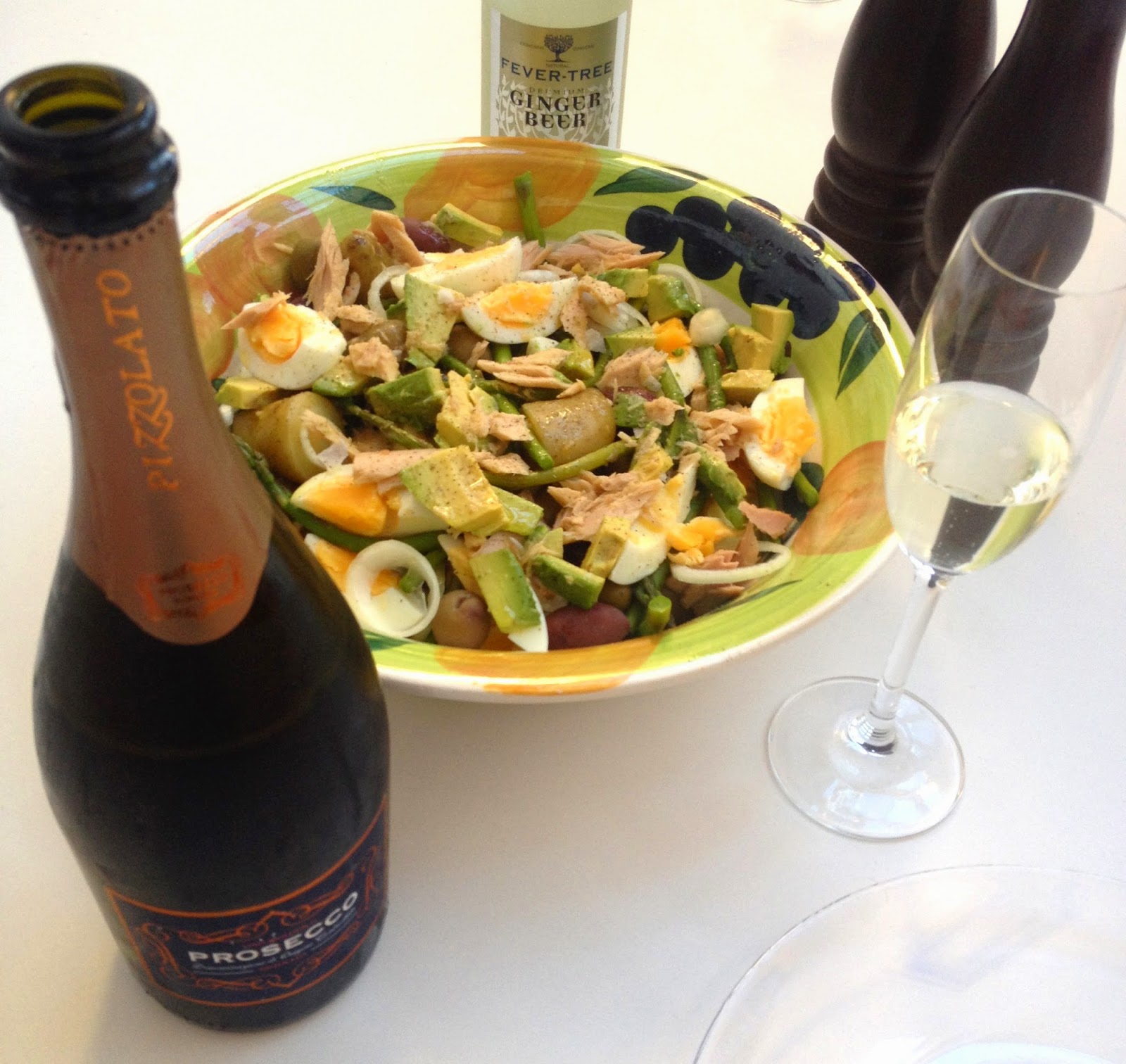 salade niçoise & prosecco 5 August 20153 April 2015 by emmaanemone A snap of the Prosecco and Salade Niçoise we had. It is made from Ortiz Tuna – so delicious!