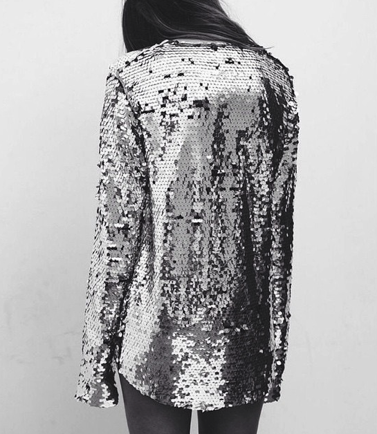 Time for some morning inspiration! I’d love to get out of my PJ and straight into this sequin dress shirt and wander about the house kind of casually classy with a messy bun. I’m also missing warm weather, tanning, the beach, abstract watery art, big wool hats and Paris.