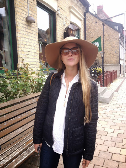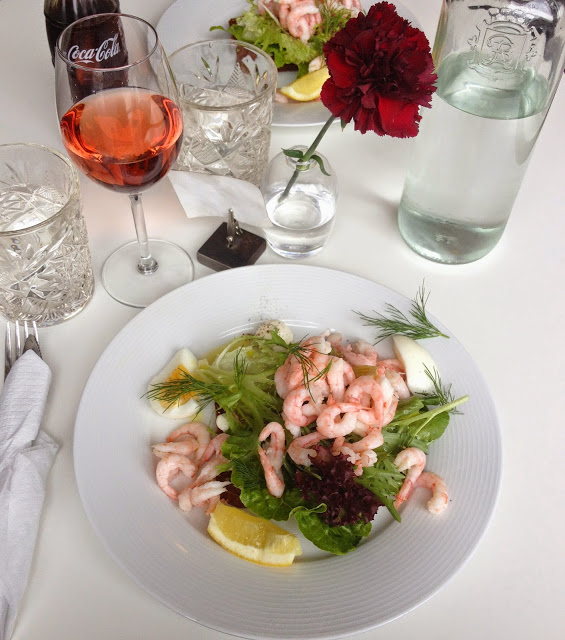 Mum and I pampered ourselves and had lunch at Vera’s Deli in Råå today. We shared one shrimp sandwich and one antipasto and they were both delicious – as usual. I also had a glass of rosé wine and I was casually dressed in caramel colours, dark blue denim and a white shirt.