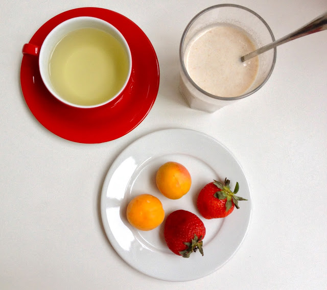 I’m so tired after a busy work weekend and I really look forward to going to the Danish Riviera later today. I hope the weather gets better so I can go for a swim! Here’s a healthy breakfast that I had last week: green tea, whole grain “välling”, apricots and strawberries. I have such a nectarine craving at the moment!