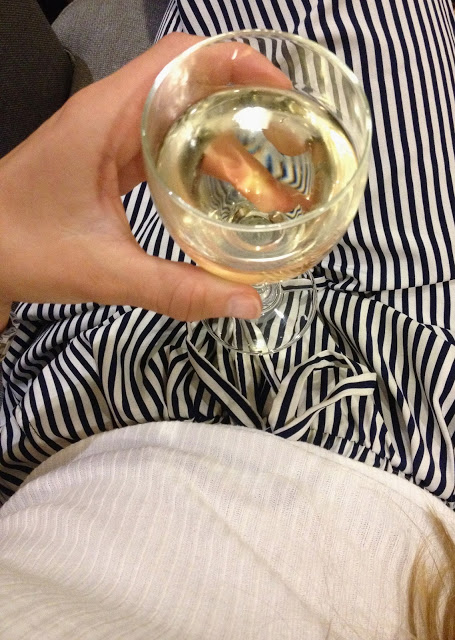 Right now I’m travelling from Stockholm to Copenhagen to Nice. The pics are from the SAS Lounge where we had some white wine and snacks before boarding. The menu was super pretty. I’m wearing a new top from Brandy Melville and a pair of striped trousers that I got in Terminal 21 in Bangkok. Nice outfit – literally.