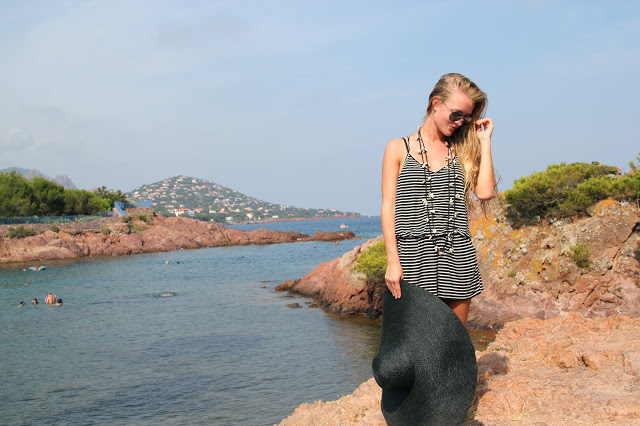 Some pictures from Tiki Beach where we went to swim and tan the first day. I’m wearing a new, cute playsuit that I got in Stockholm (please read the outfit details below). I love the sea here, it’s the perfect temperature but my hair always gets that wild salty frizz.