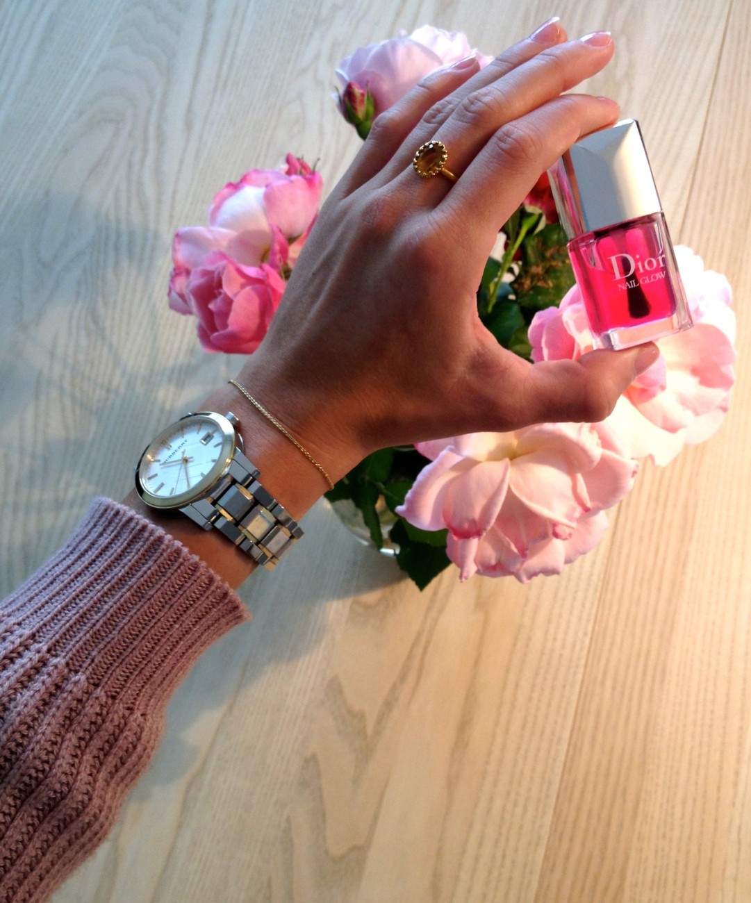Tried my Grandmother’s pink Dior Nail Glow lacquer on this morning while reading about the nervous system. The nail polish gives the nails a slight ombré finish with light pink on the tip and a sheer purple near the roots. Very pretty and subtle!