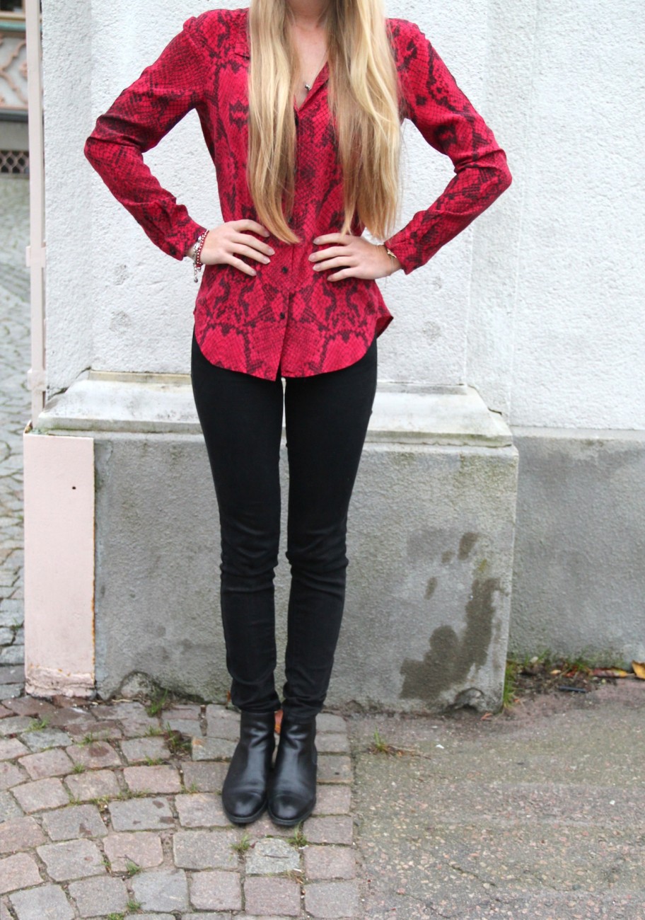 I just walked home from dance class, it’s already dark, cold and rainy outside. Brrr! But it’s quite cozy when you get inside… I’m currently sitting in my bed, blogging. These pictures were taken earlier today. I still love my silk shirts from The Kooples… Now I’m going to hop in the shower, prep some sourdough bread and lobster soup with cognac and have a nice and quite Friday evening.