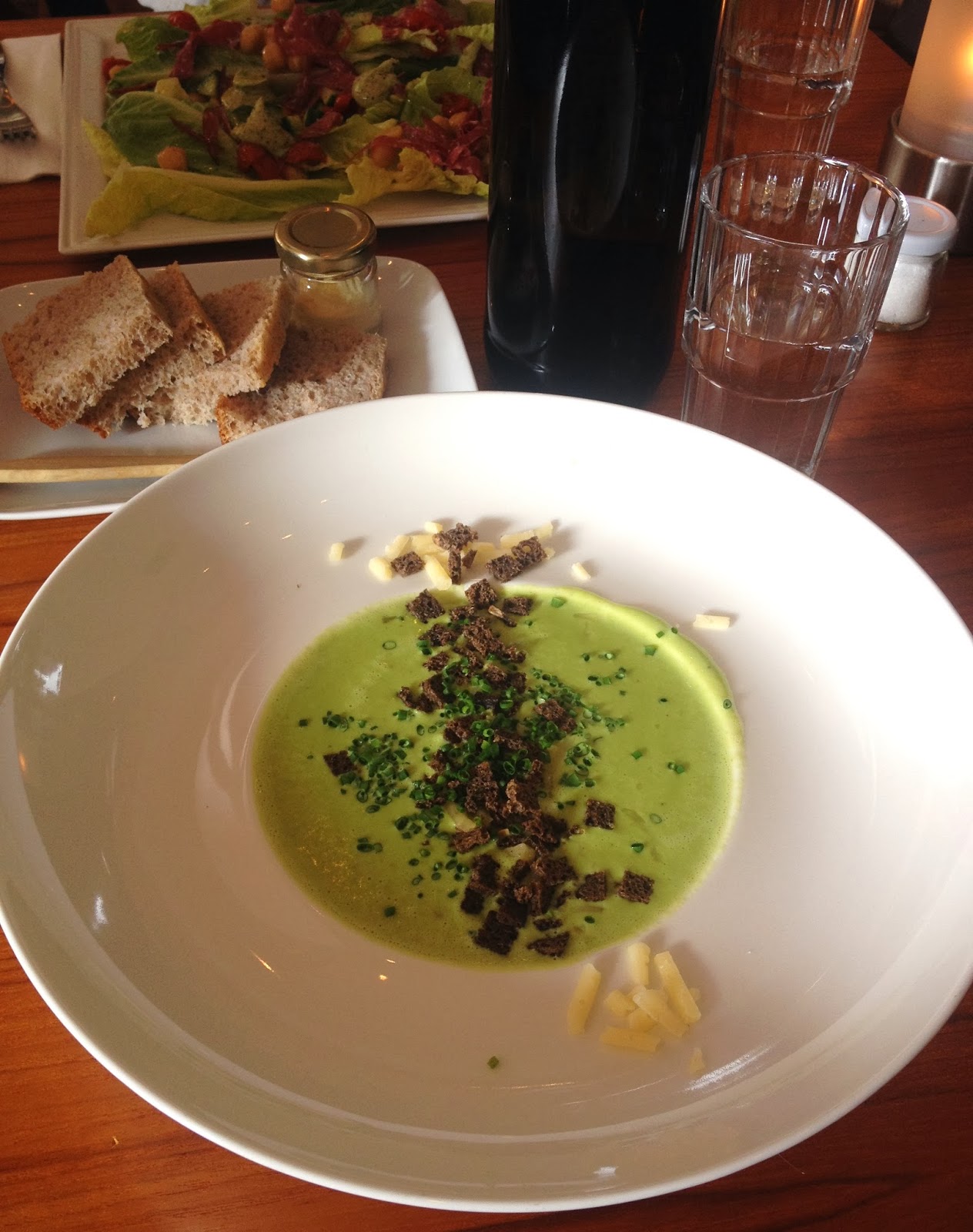 I’ve been eating lots of delicious soups lately. The one above is green pea soup from Château Forêt and the one below is a fish and shellfish soup from Klostergården.