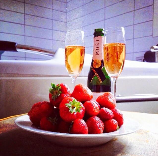 Drinking Rosé Impérial from Moët & Chandon and eating strawberries in the bubble bath. Is it possible to have a better evening?