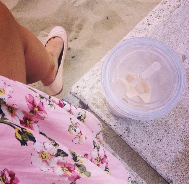 A picture from when I watched beach volley and sipped ice latte. Love this pink flower dress and ballerina.