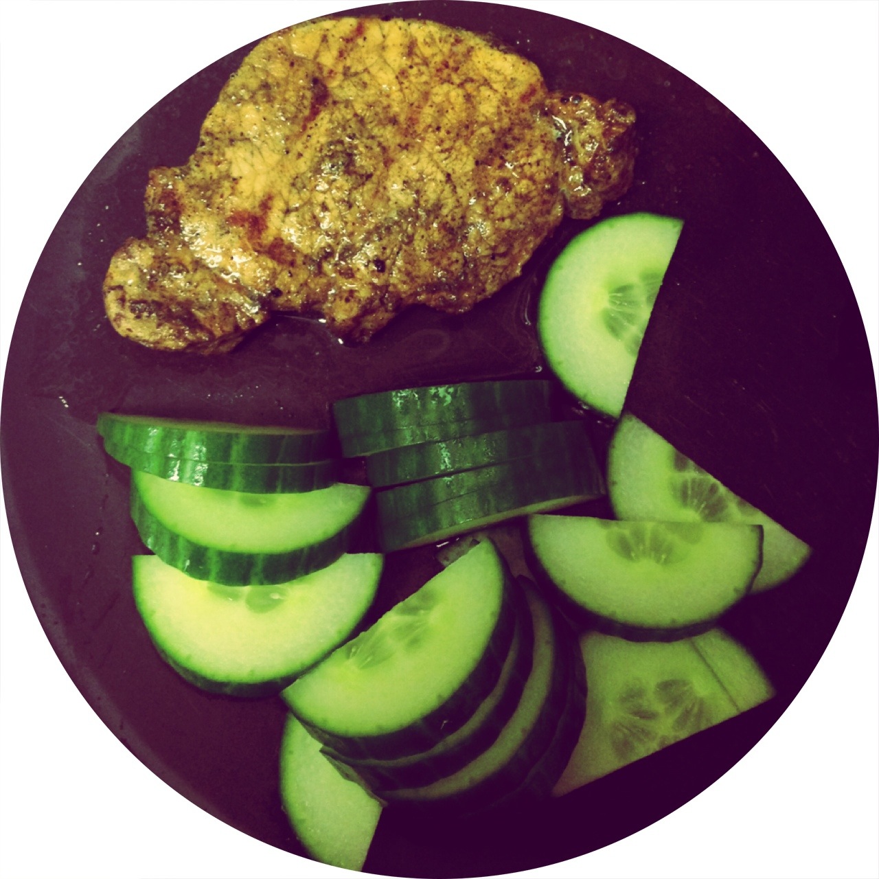 Till middag åt jag kött och gurka.
