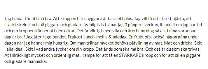 Jag tränar för att må bra. För att klara något som andra säger att jag inte kan. För jag är bra. Alla är bra. Du är bra. Jag vill precis som Olivia skrev i sin blogg ha en hälsosam kropp och ett hälsosammare liv. Jag vill leva länge.