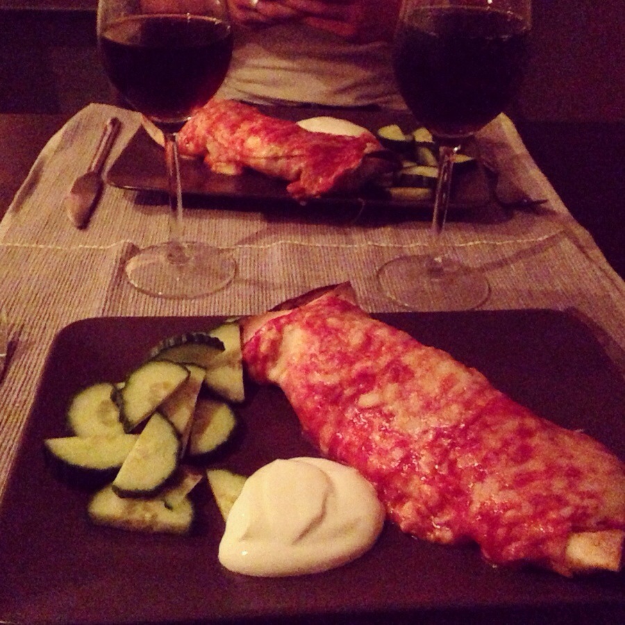 Världens bästa pojkvän bjuder på middag och myskväll. Inte nog med att han är världens bästa utan han är grym i köket också! På menyn stod burritos, riktigt gott.