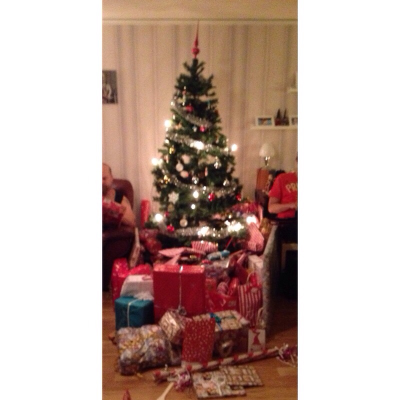 Jag har haft en lång mysig julafton idag, den hade varit perfekt om Tom varit vid min sida. Som vanligt så skulle min familj slå på stort, alla julklappar sträckte sig ut en meter från julgranen. Dagen bjöd på det klassiska julbordet och massvis med desserter.