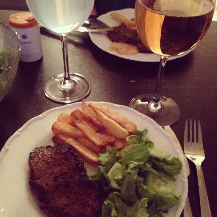 jag och Rebecca var ensamma en kväll och lagade god mat, vi drack gott och hade en supermysig kväll.