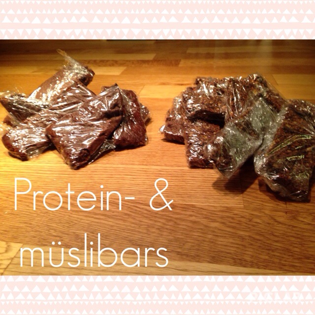 Jag bakade förresten proteinbars och müslibars igår. Behöver mer mellanmål som kan ligga en hel dag i väskan. Dom blev inte särskilt goda dock, vilket var konstigt för jag gillar alla ingredienser. Kan ha att göra med att jag mixade det i matberedaren (som man skulle) men det blev inte alls bra. Tummen ner för det.