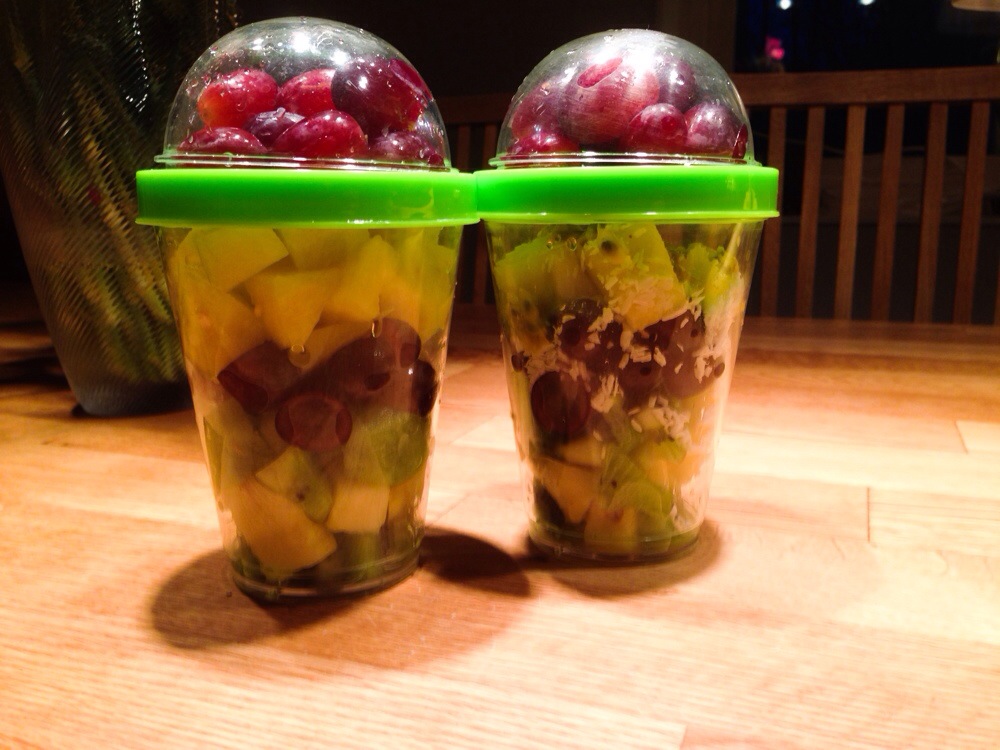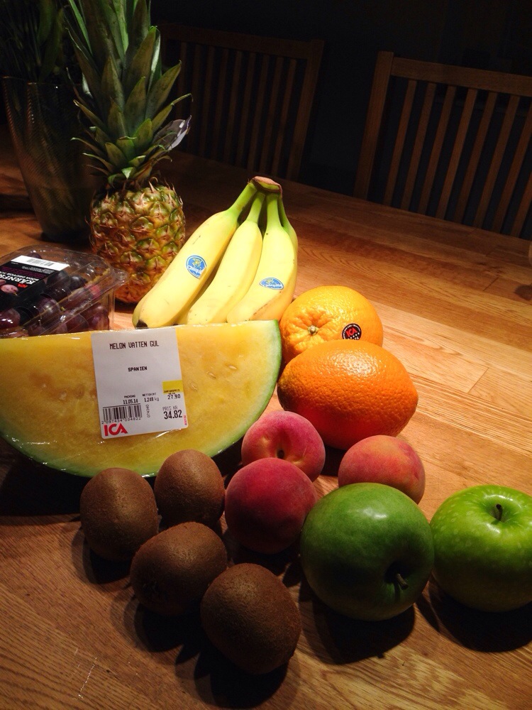 Efter cirka två timmars övningskörning igår så åkte vi förbi Ica och köpte hem massa frukt. Vi mealpreppade lite inför denna hektiska dag (jag har två NP) och mellanmål är så pass viktigt som det är. Så varför inte köra på fruktsallad?