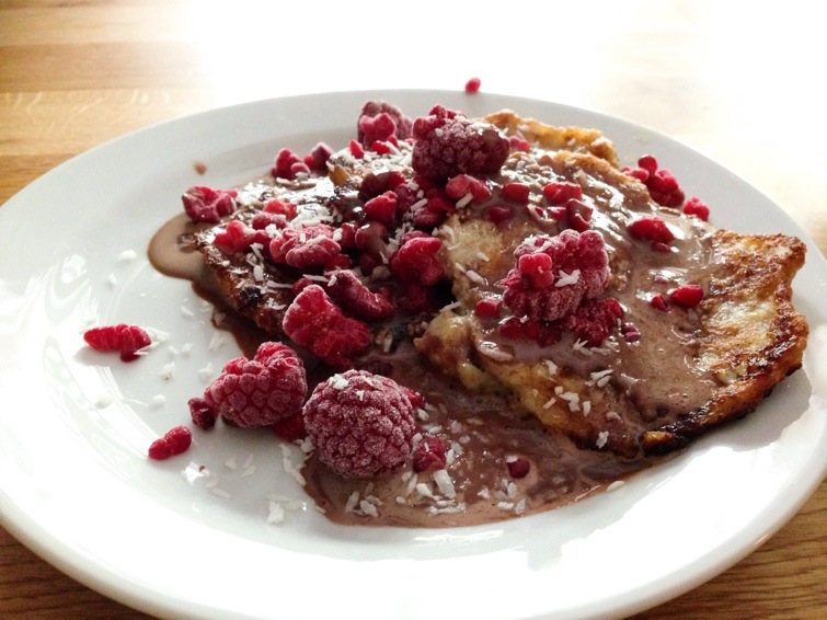 Gissa vad jag åt till frukost idag? Bananpannkakor såklart. Jag försökte mig på att göra någon slags chokladsås gjort på proteinpulver till. Det var gott men funkade inte jättebra till pannkakorna…