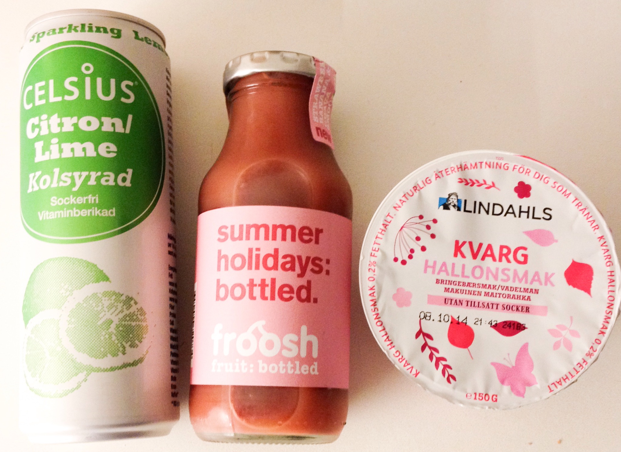 Det här är en frukost kombo som jag alltid kör med när jag till exempel ska upp sjukt tidigt. Hallonkvarg utan tillsatt socker, smoothie från froosh gjord på endast frukt och en celsius. Jag blir proppmätt och det är BRA mat. Perfekt för någon på språng. Ibland äter belvita kex också, även om jag vet att man borde undvika allt hel- och halvfabrikat hit och dit. Men vad gör man när tiden inte finns till?