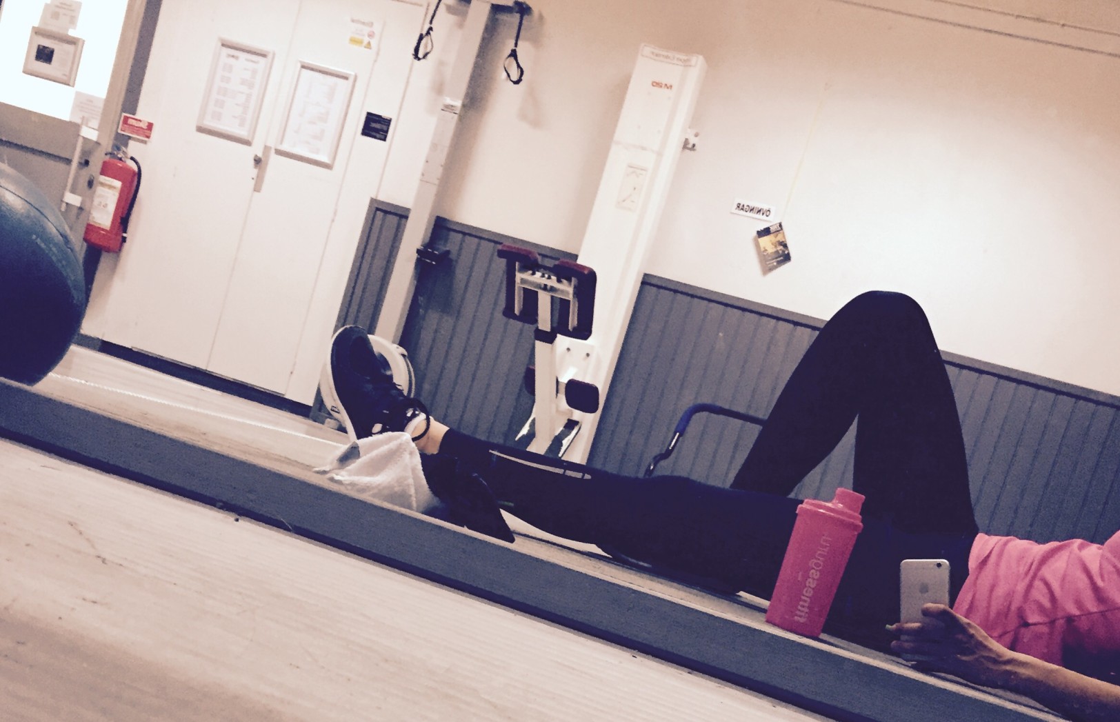 Där ligger jag och chillar. På gymmet. Typ. Försökte få till iallafall en liten selfie idag när jag stretchade men lyckades sådär. Så tog en chill bild. Hade ett helt ok pass, jättedålig energi men jag fick till riktigt bra kontakt i musklerna, särskilt efter den långa vilan jag haft från gymmet de senaste veckorna så imorgon väntar jag mig iallafall lite smärta i kroppen. Bara liiiite.
