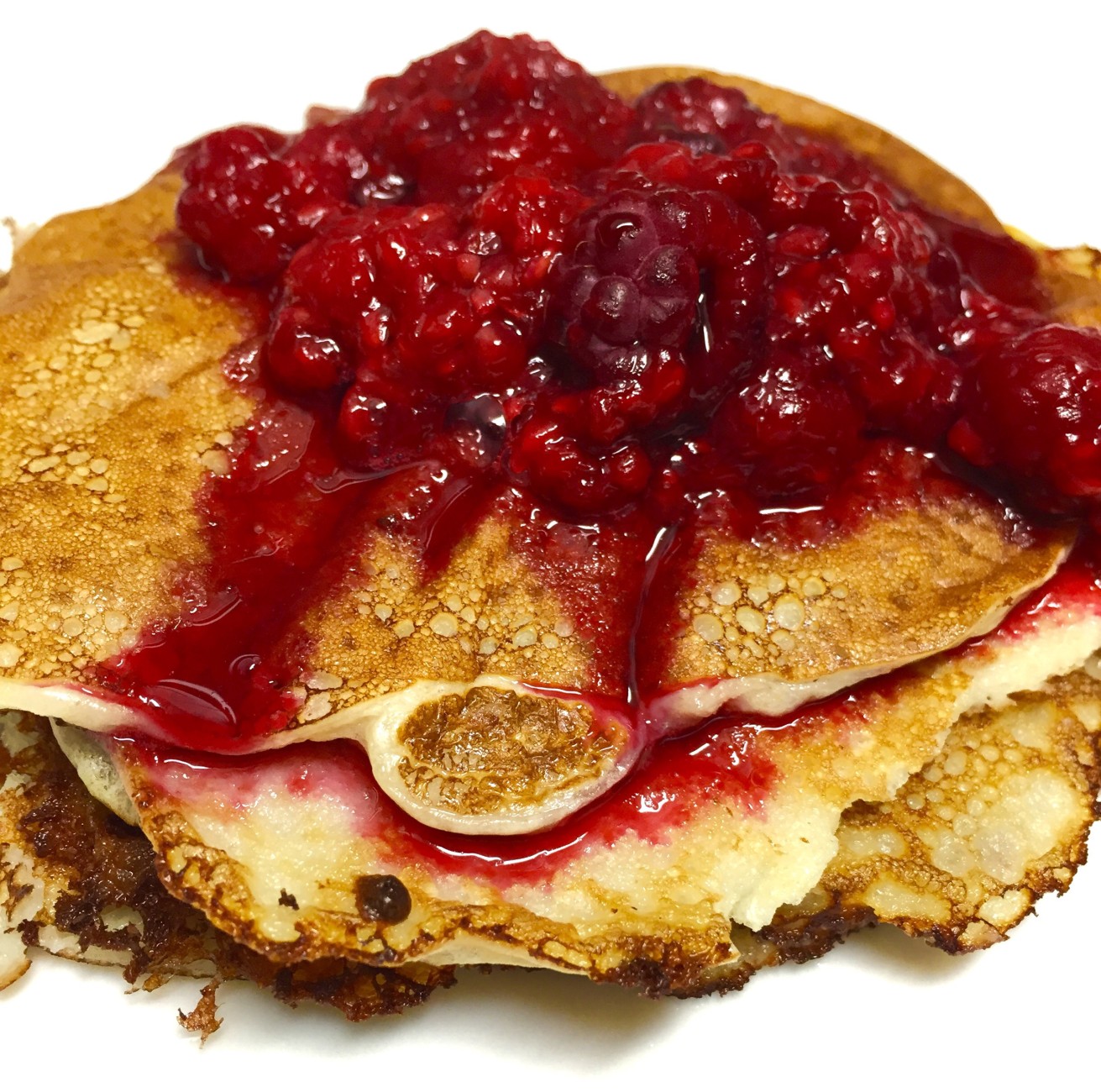 Åt en fruktansvärt god frukost i morse (igen), det har typ blivit en vana under de dagar jag har sovmorgon. Vaniljproteinpannkakor med varma hallon och agavesirap, ett glas apelsinjuice och en proteinsmoothie. Dör matdöden varje gång och hamnar i världens matkoma men vad gör väll det? Gott och bra för magen! Jaiho.