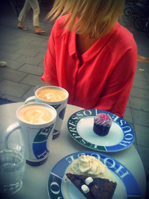 Okej, Här rundar jag och min vän Sara av den grymt Roliga helgen i Stockholm med en fika! seg som man förtjänar kanske? haha, det blev en del fika pauser innan hemgång måste jag erkänna 😉 Det värsta var att jag började jobba klockan 9 igår kväll, skulle inte hinna hem innan, så det var ju bara att bege sig direkt till Jobbet!