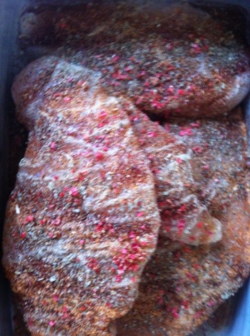 Sedan fixade jag till kycklingen med honung, rosépeppar och lite andra kryddor. Väldigt gott!