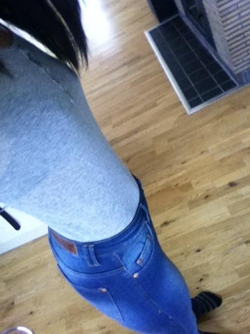 Känner mig nästan lite 70-tal bara för att jeansen är utsvängda. Jag skulle vilja ha ett par som var mer utsvängda. Jag gillar utsvängda bättre än smala. Jag har lite bredare höfter och då är det snyggt med utsvängda.